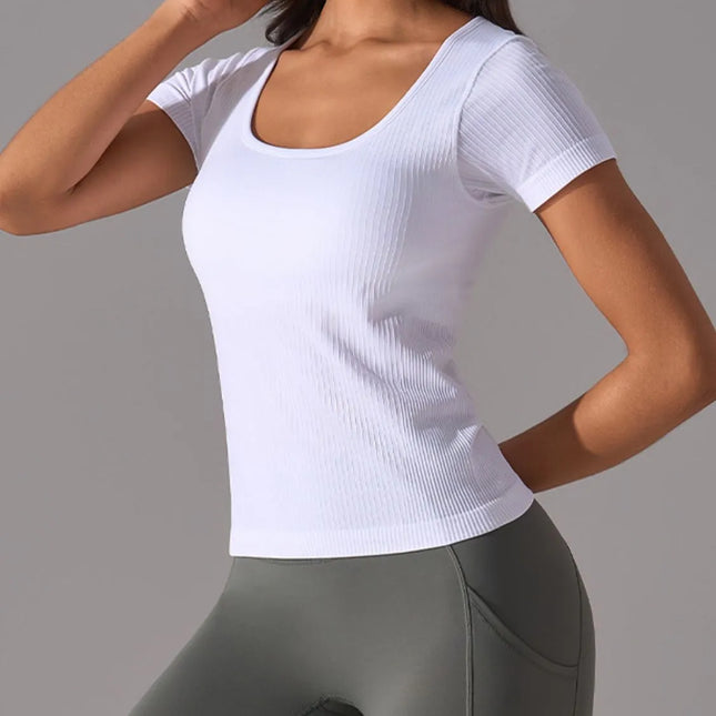 Square Neck Active T-Shirt with Detachable Chest Pads