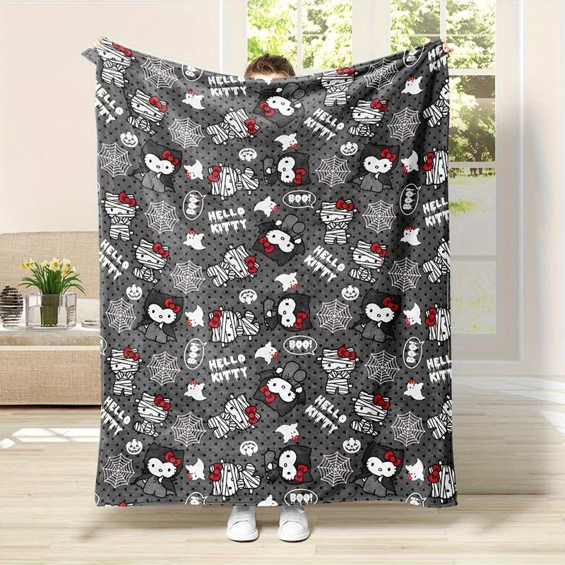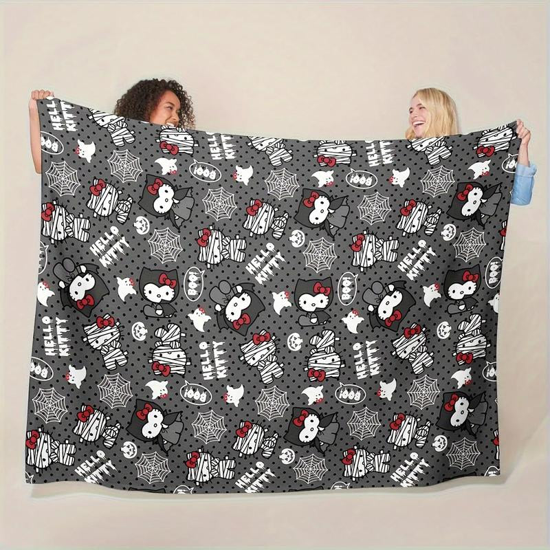 Embrace the Halloween spirit with our Fun Halloween Hello Kitty Themed Printed Plush Blanket—perfect for snuggling up during spooky movie nights, adding a playful touch to your home decor, or gifting to a Hello Kitty fan. Make this season memorable with a blanket that combines fun, functionality, and festive charm!