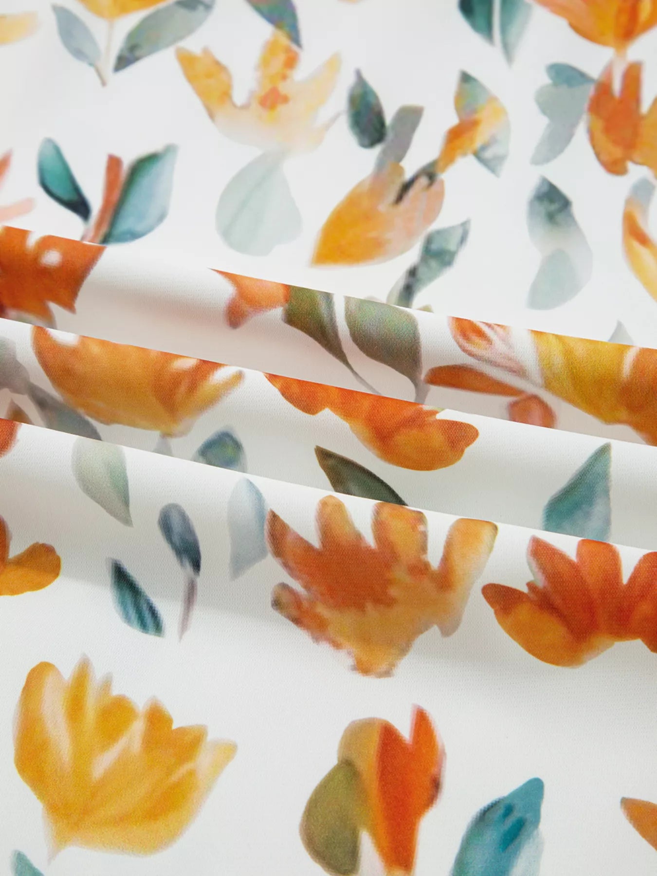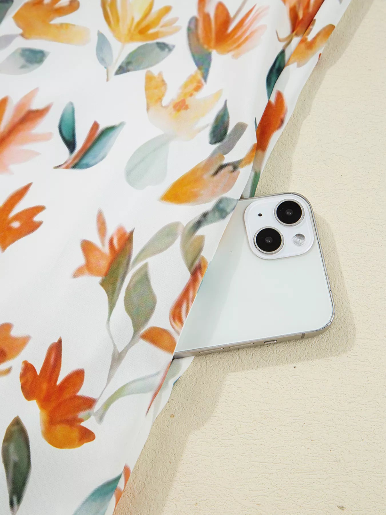 Floral Print Tie Neck Frilled Detail Long Sleeve Mini Dress