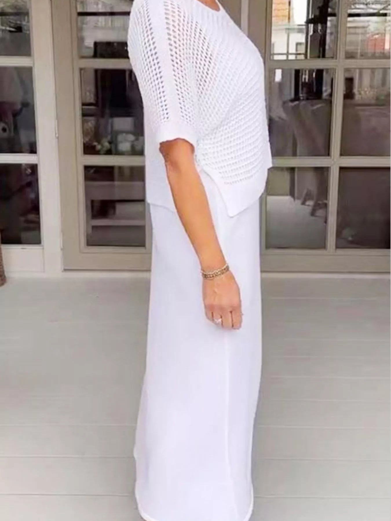 Full Size Openwork Knit Cover Up and Dress Set Plus Size