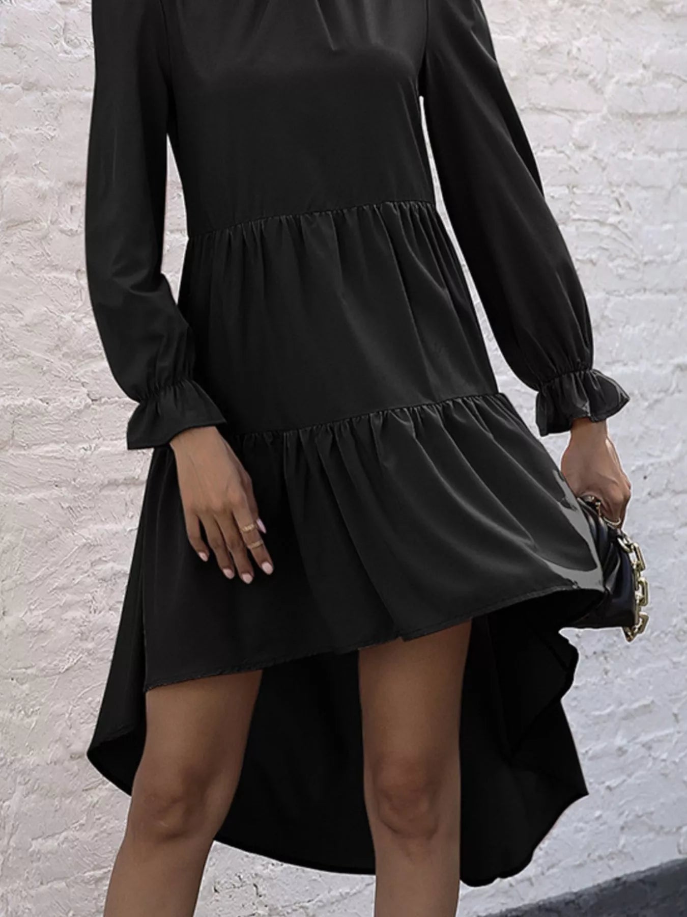 Features:Tiered,High-Low Stretch:Slightly stretchy Body:Not lined Material composition:92% polyester, 8% elastane Care instructions:Machine wash cold. Tumble dry low. Imported Product Measurements... Read more