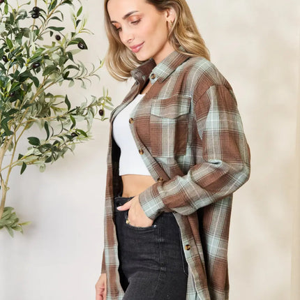 This plaid shirt features a collared neckline and long sleeves, offering a classic and refined look. The dropped shoulder design... Read more