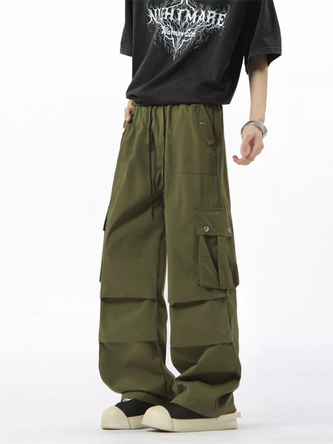 Men's Full Size Drawstring Loose Fit Cargo Pants Plus Size