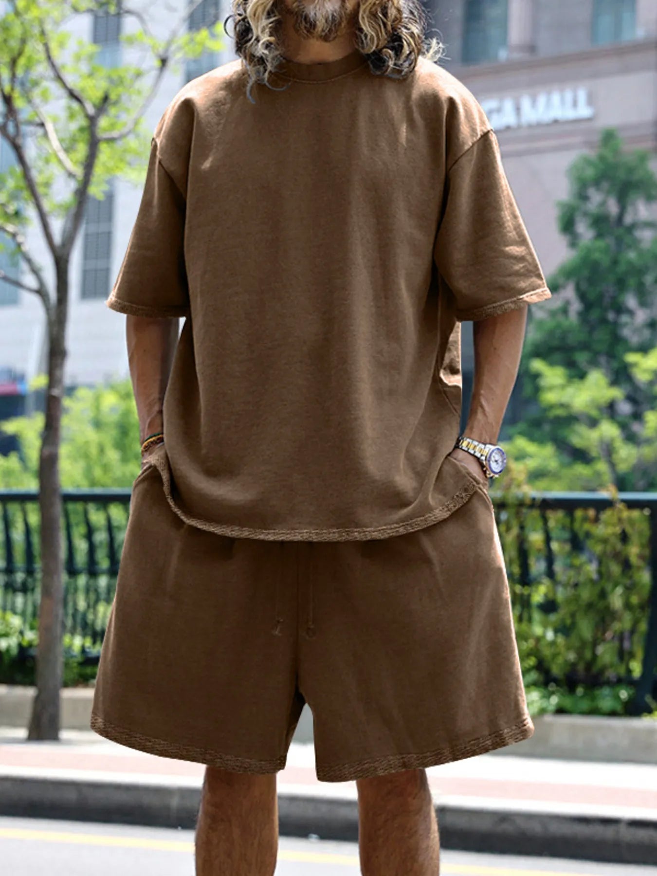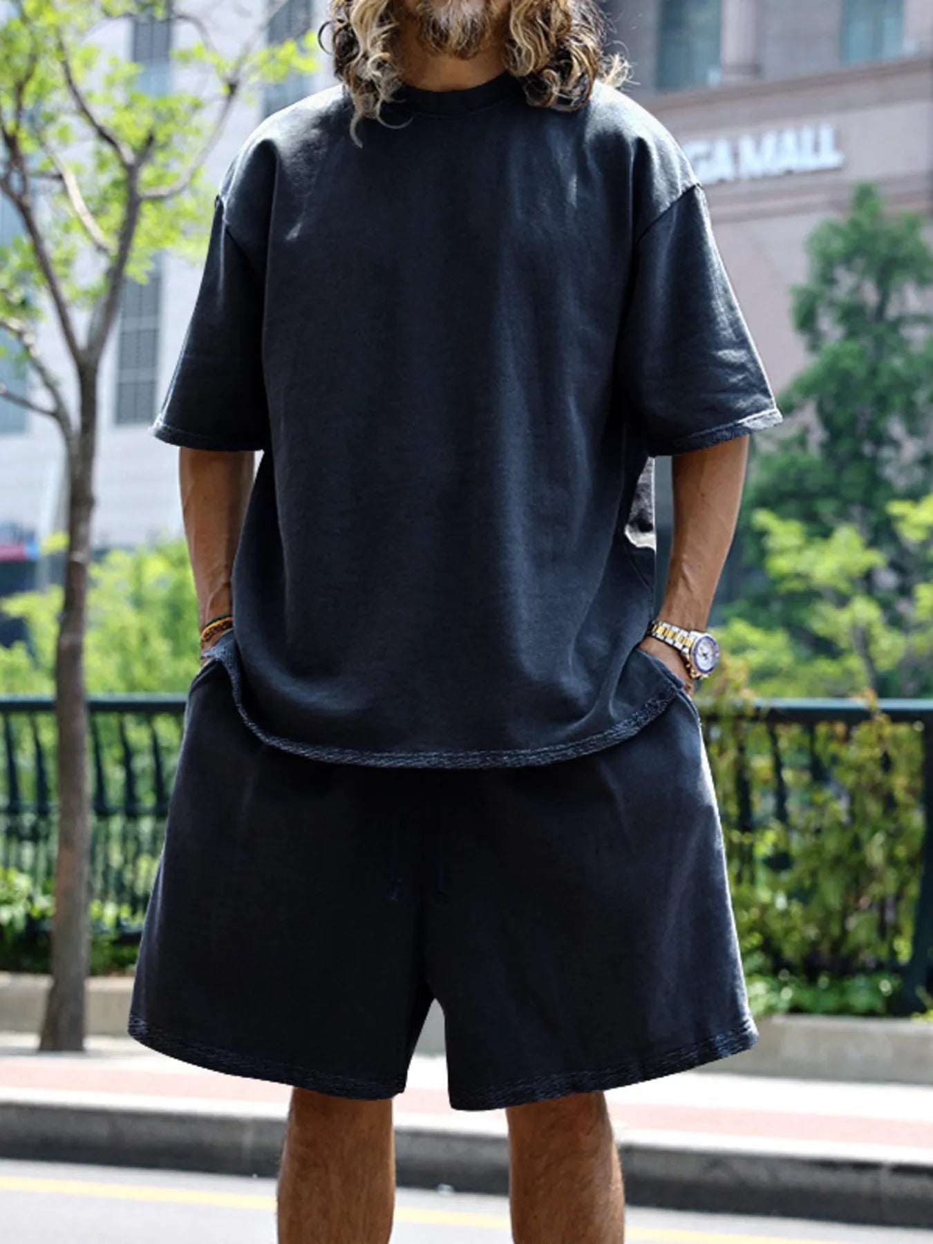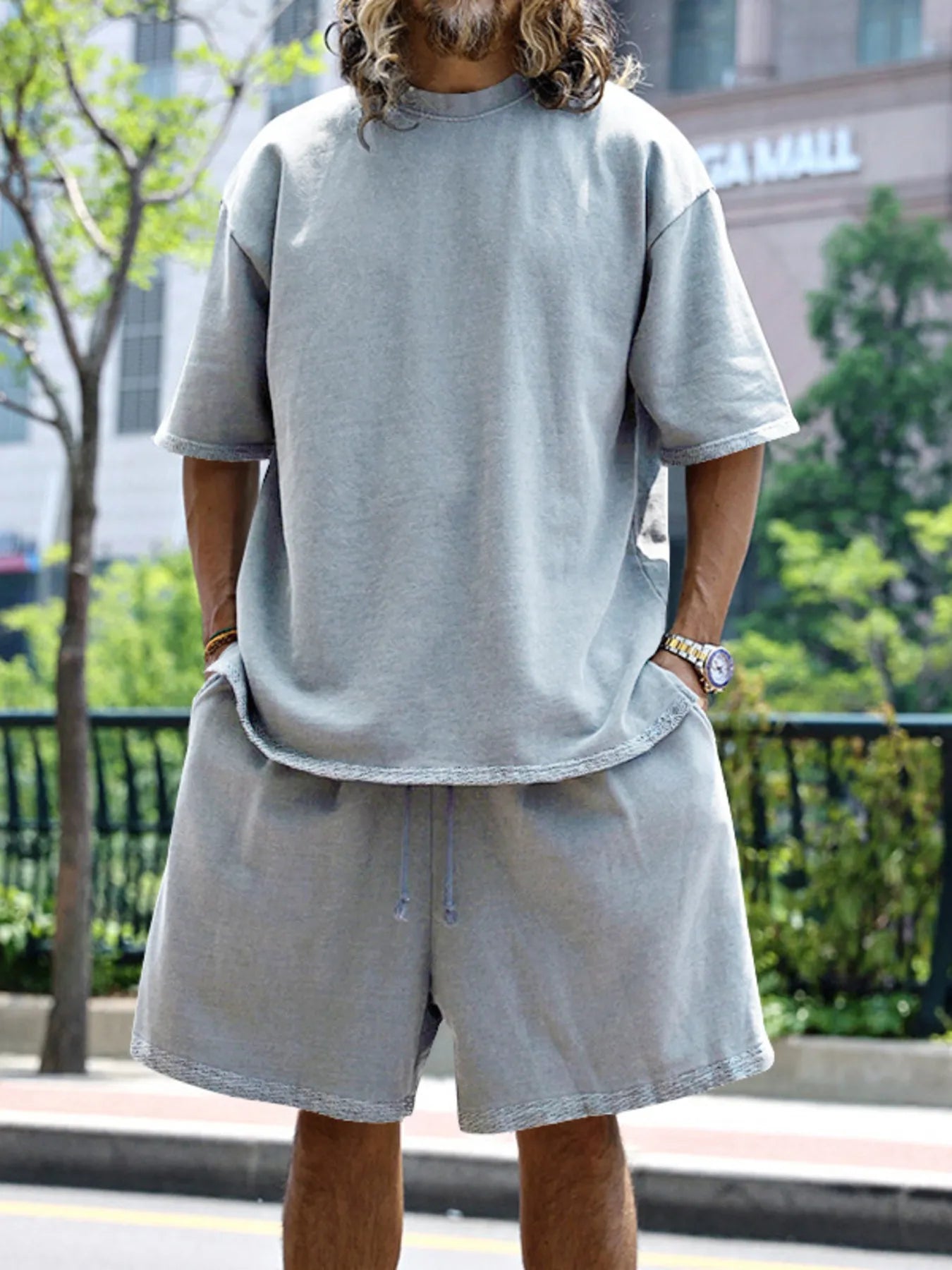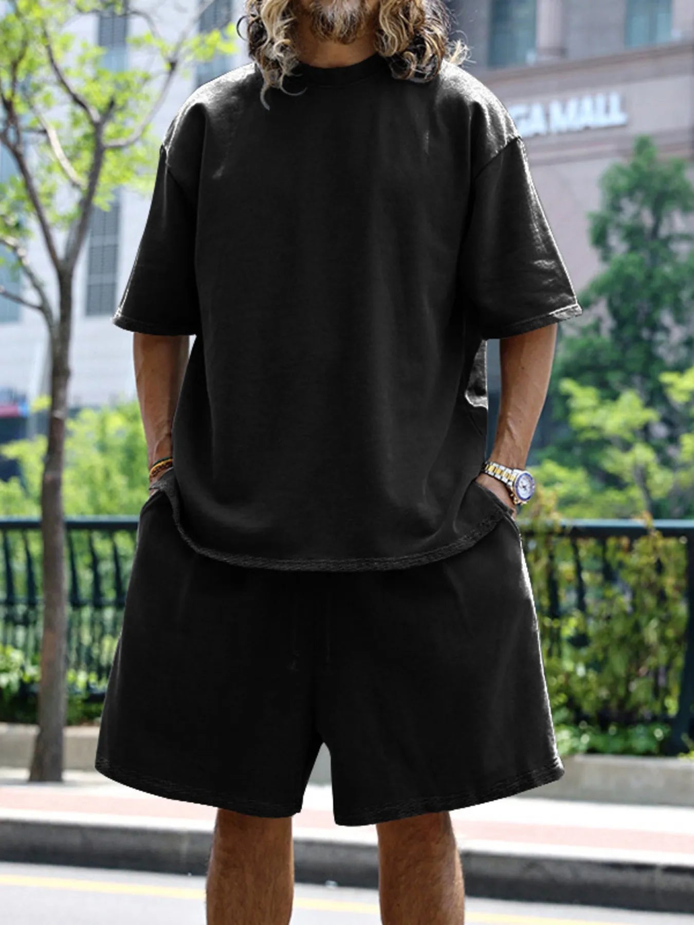 Men's Full Size Round Neck Short Sleeve Top and Shorts Set Plus Size