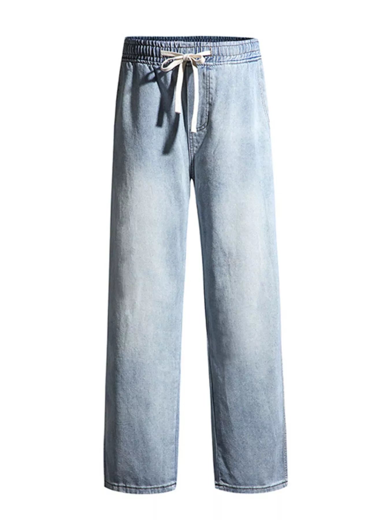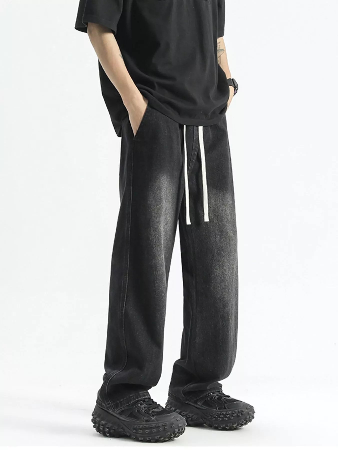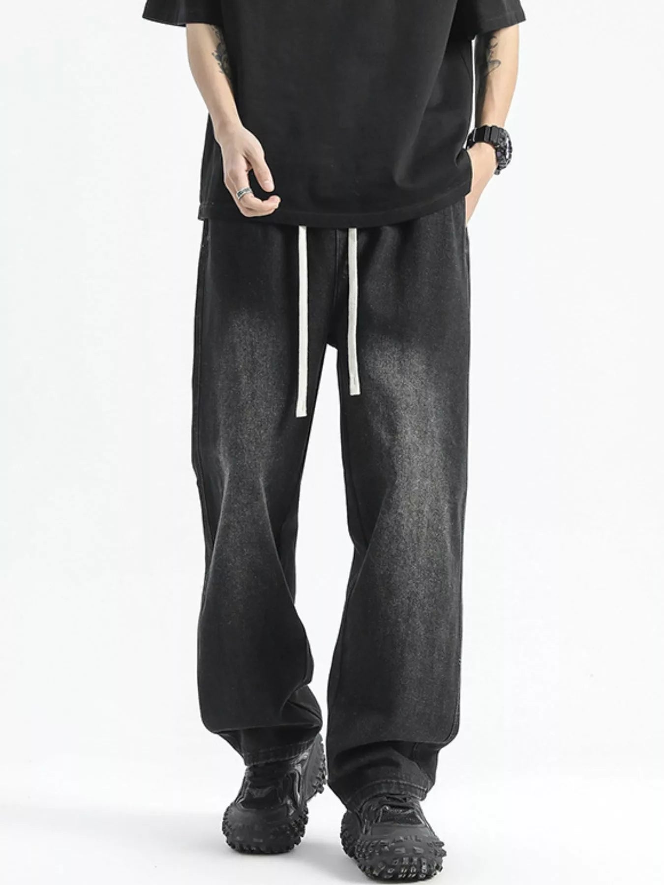 Men's Full Size Washed Wide Leg Drawstring Jeans Plus Size
