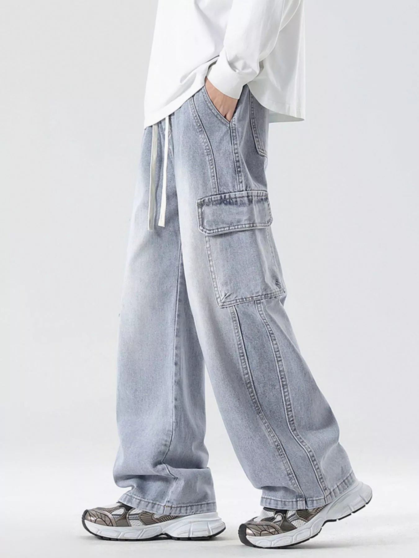 Men's Full Size Wide Leg Cargo Jeans Plus Size