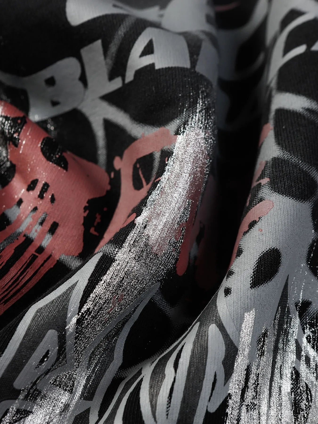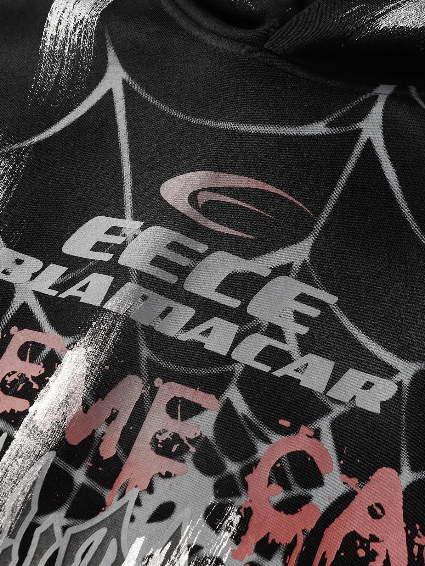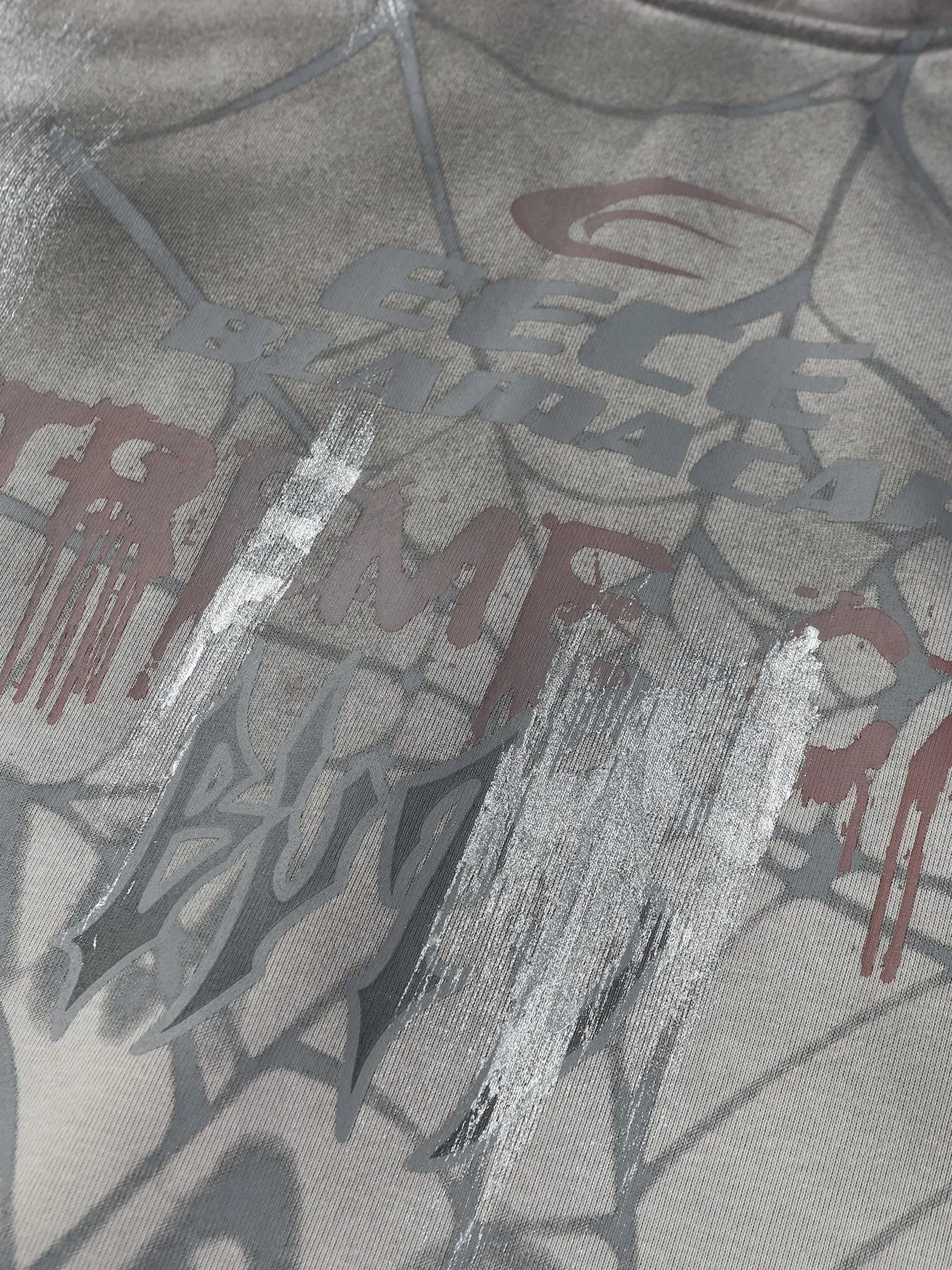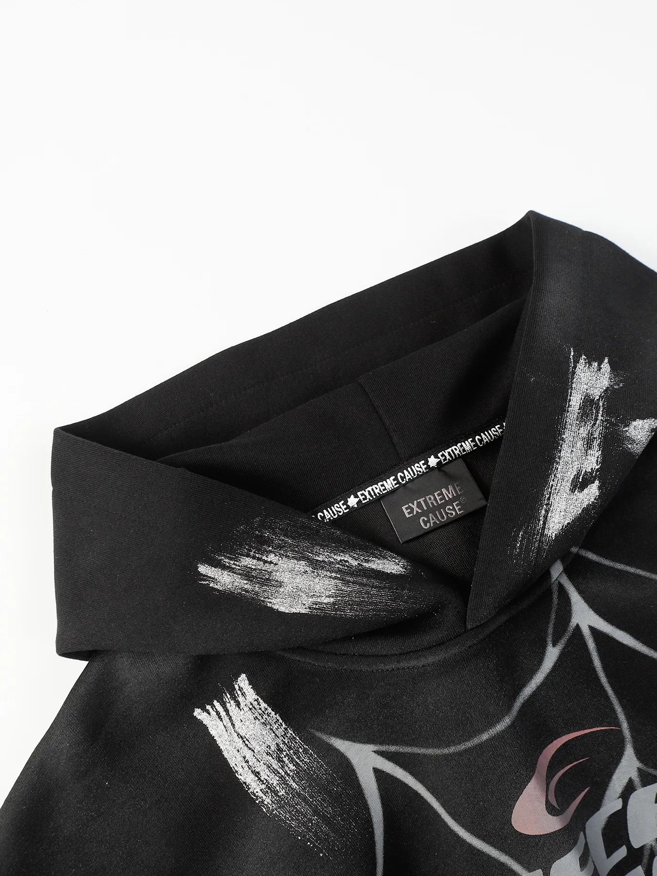 Men's Gothic Spider Web Graffiti Print Hoodie