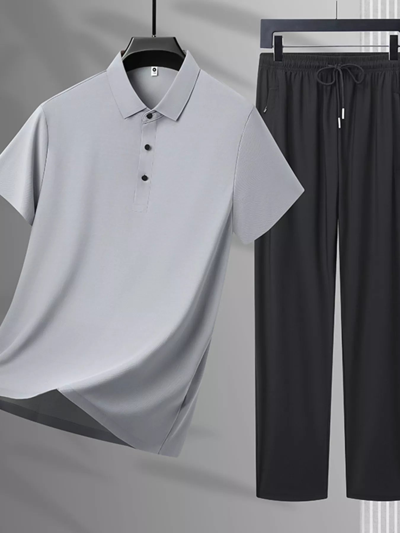 Men's Plus Size Button Detail Polo and Pants Set