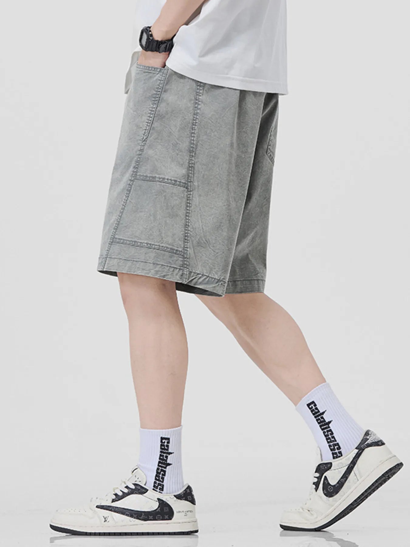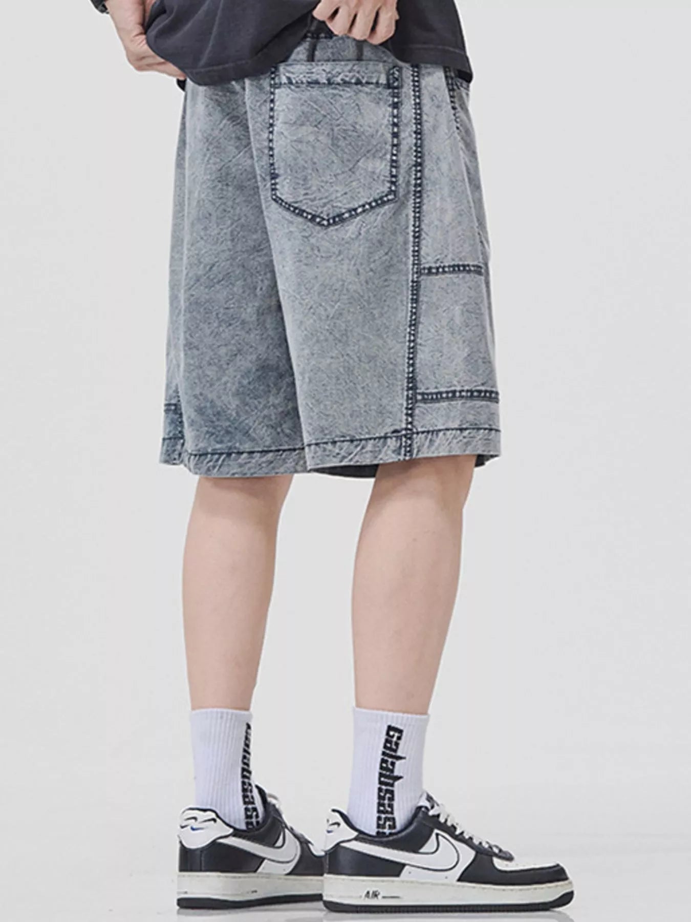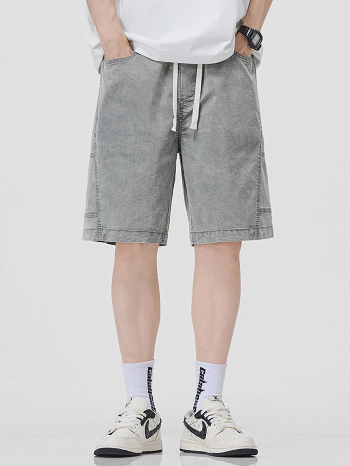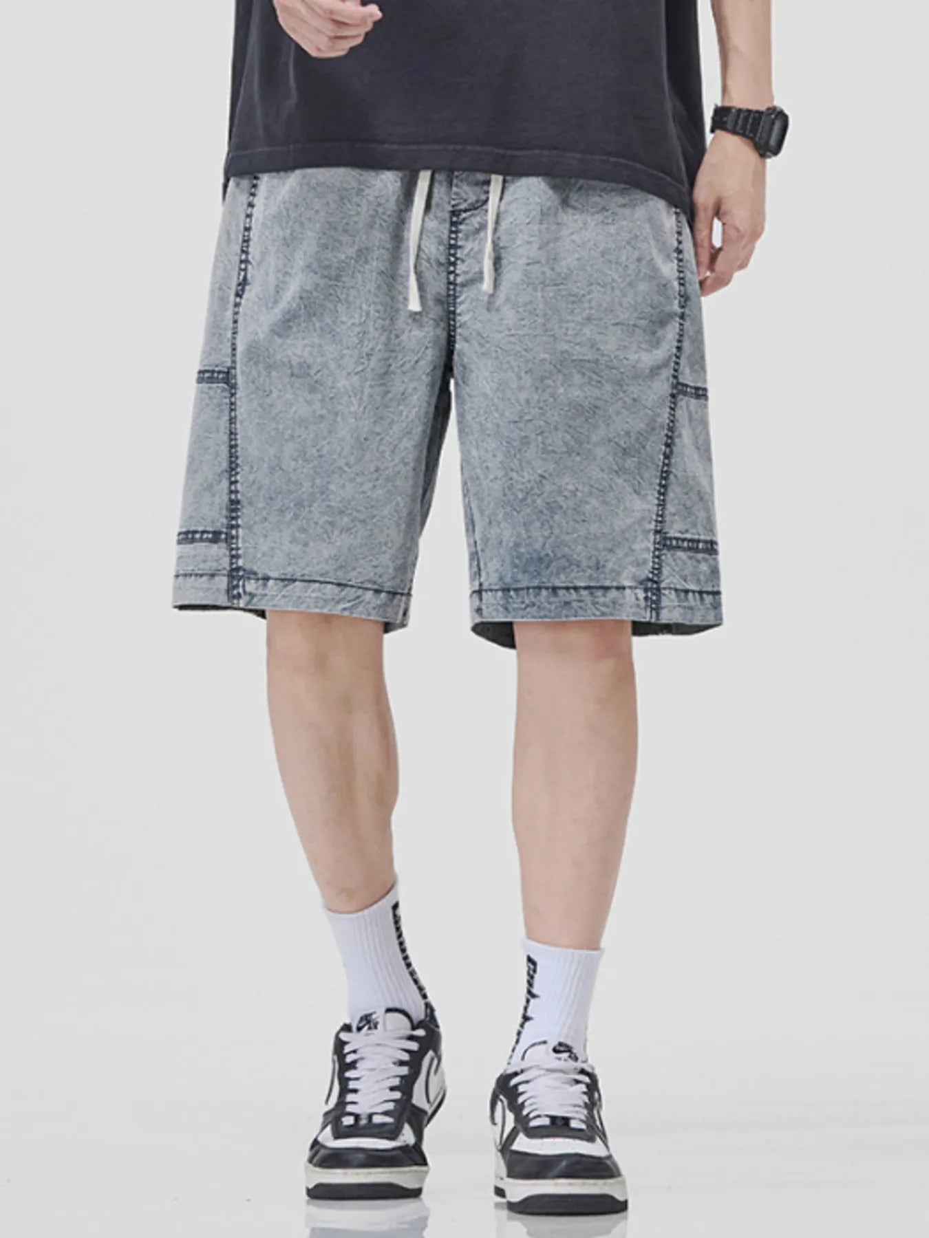 Men's Plus Size Drawstring Washed Denim Shorts