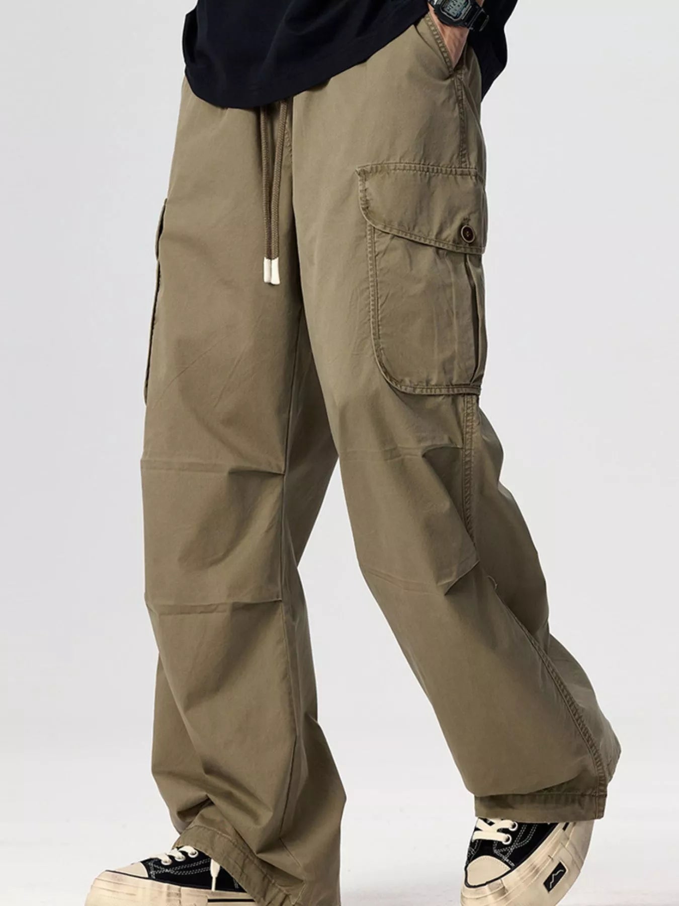 Men's Plus Size Drawstring Wide Leg Cargo Pants