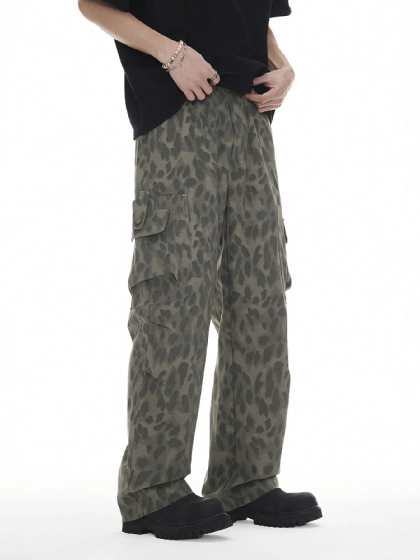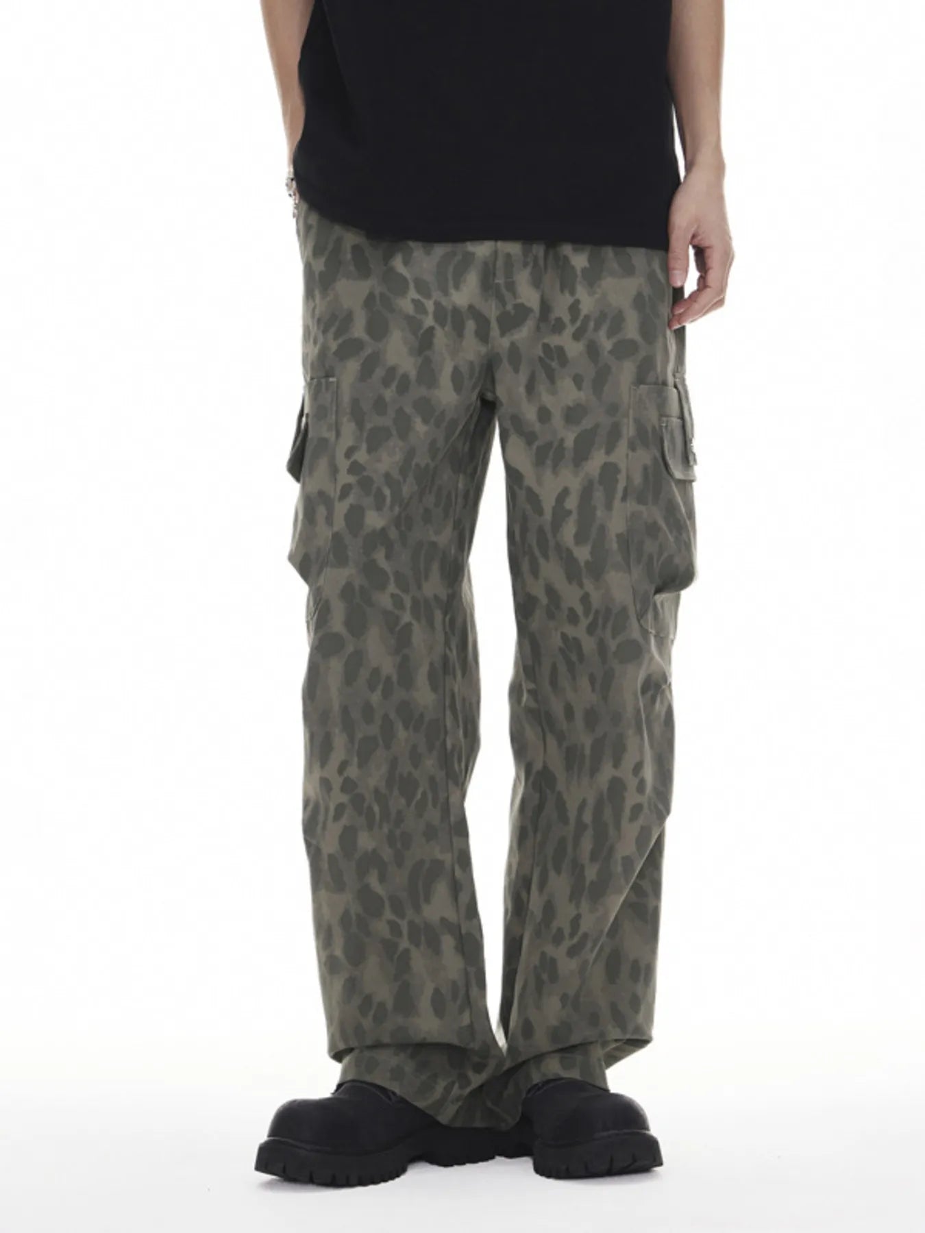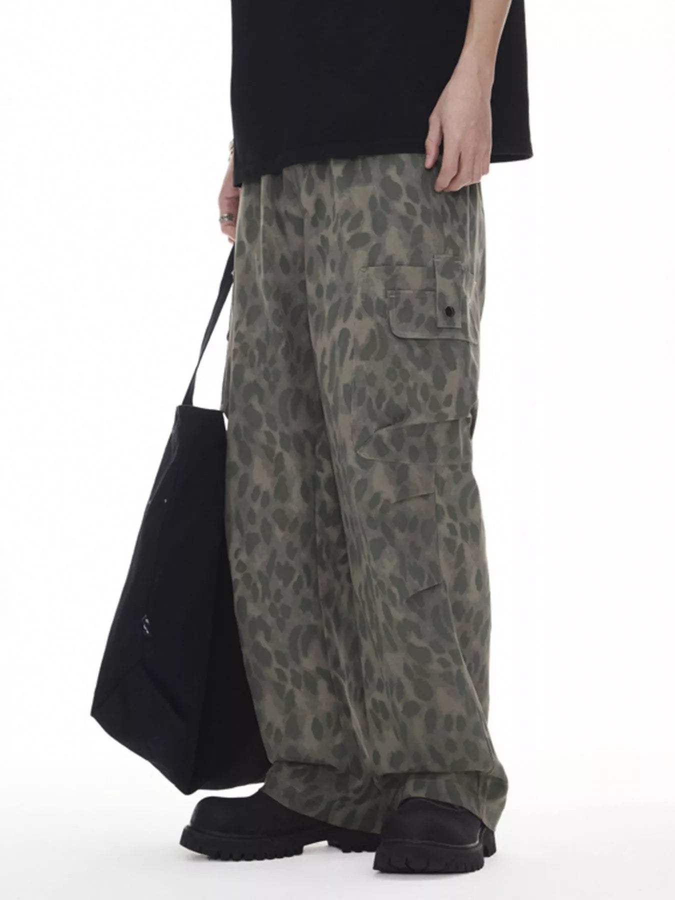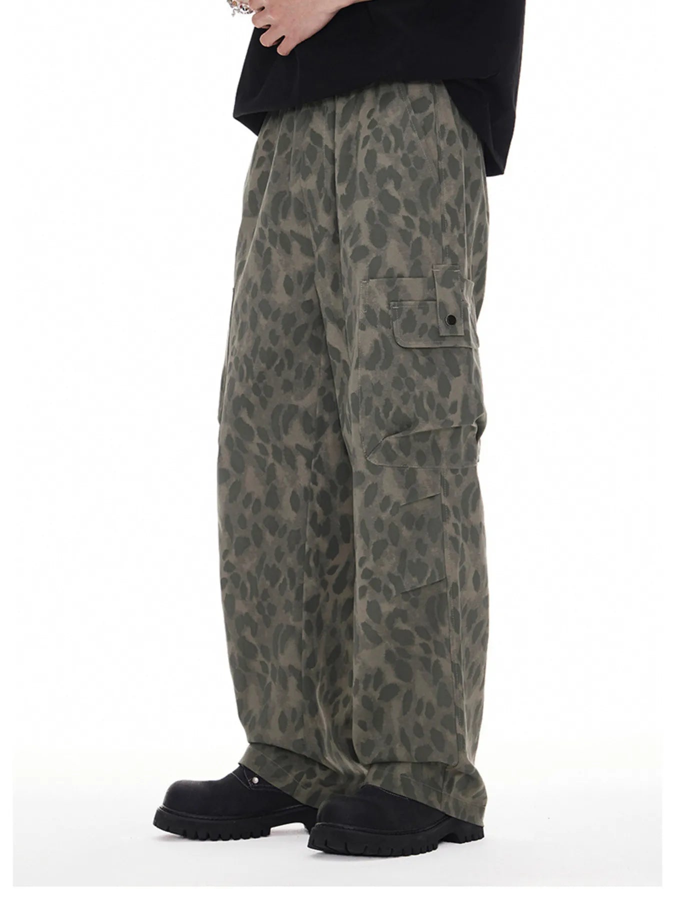 Men's Plus Size Leopard Wide Leg Cargo Pants