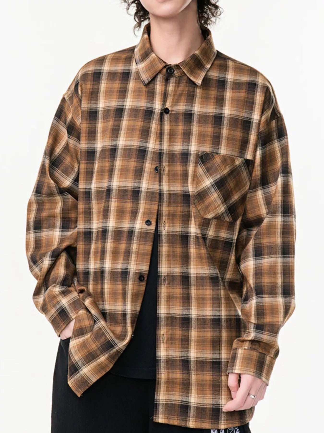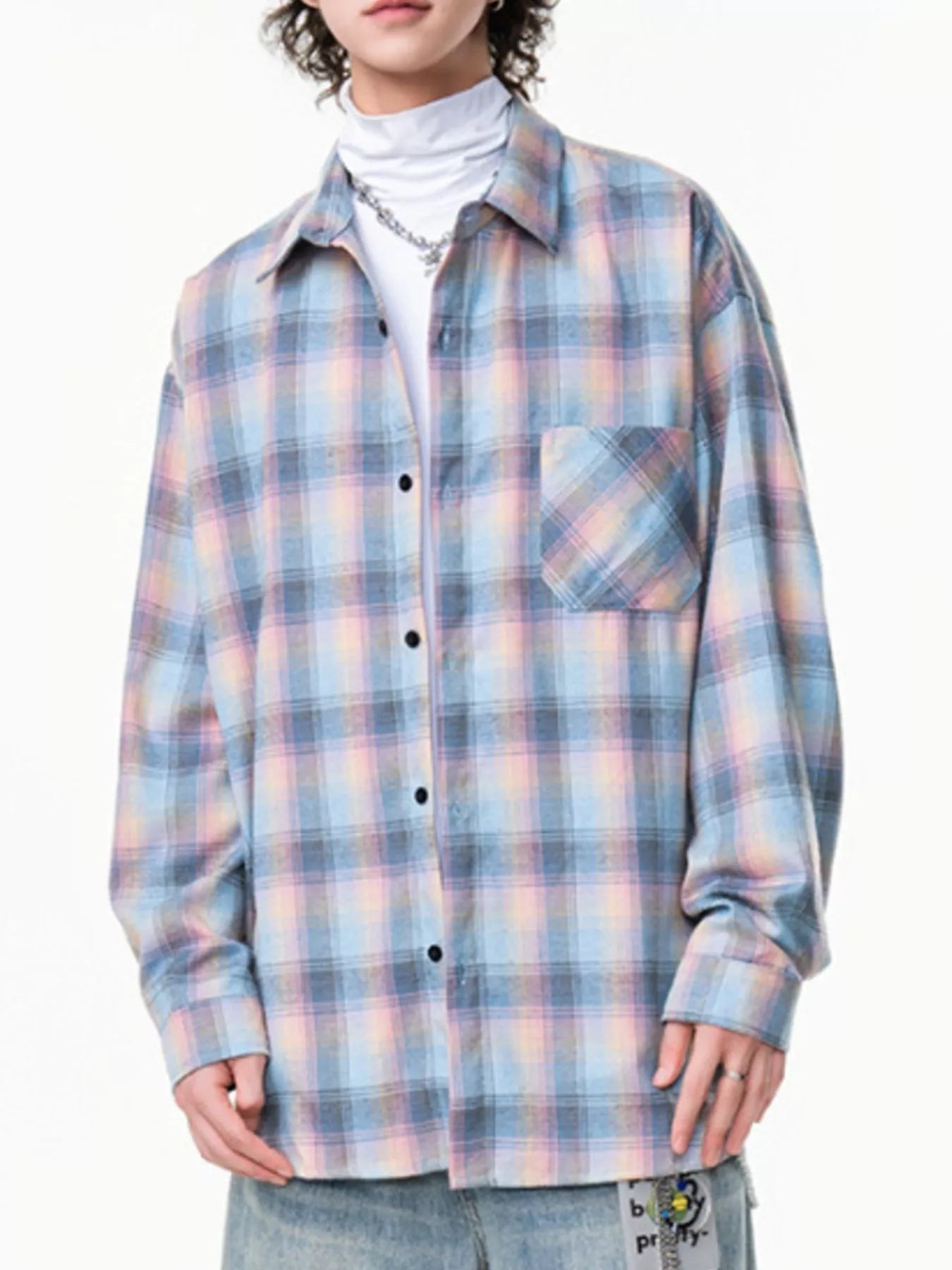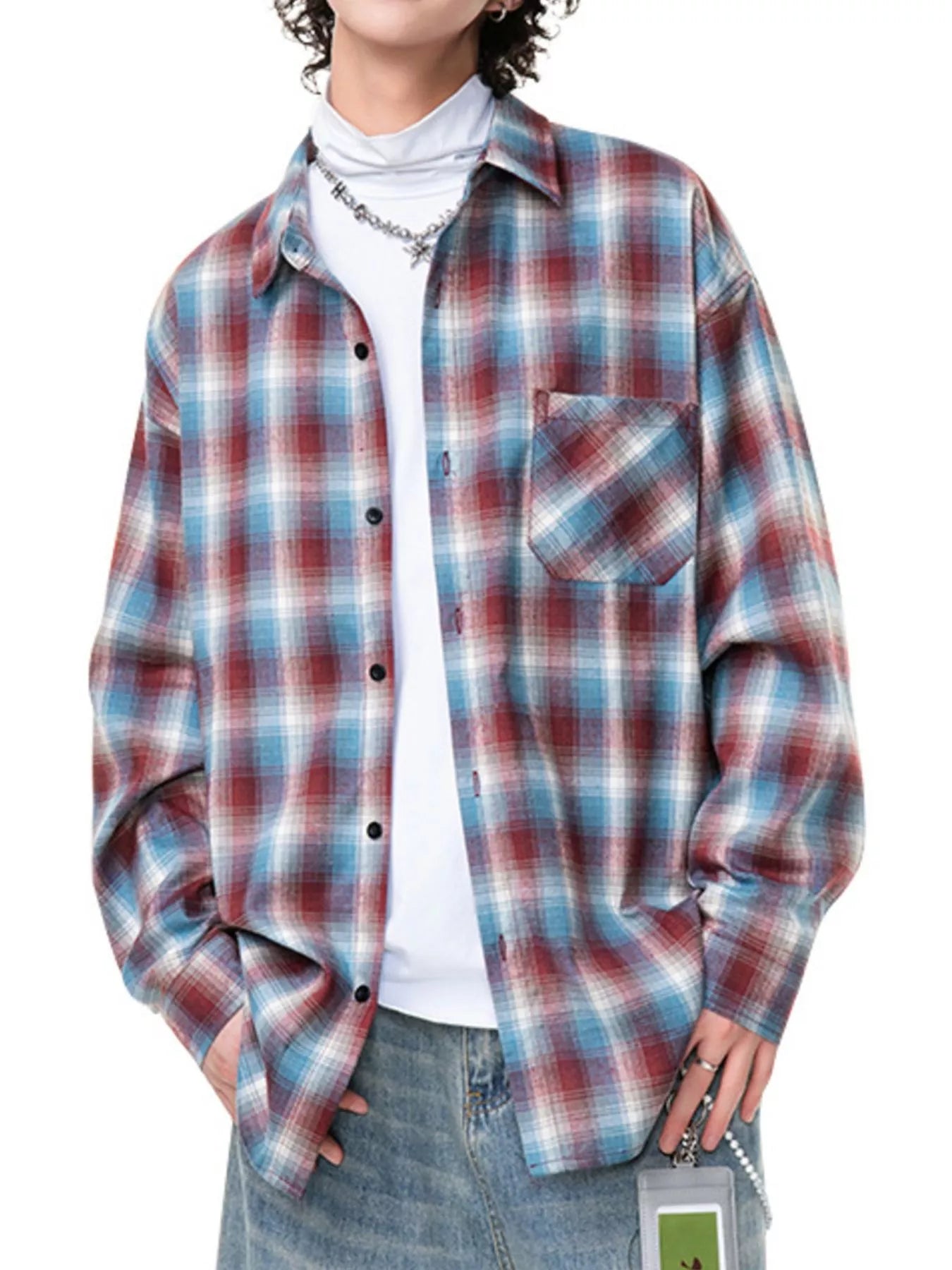 Men's Plus Size Plaid Button Up Long Sleeve Shirt