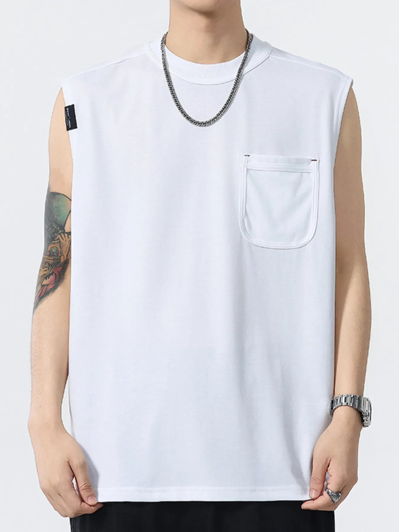 Men's Plus Size Round Neck Tank with Chest Pocket