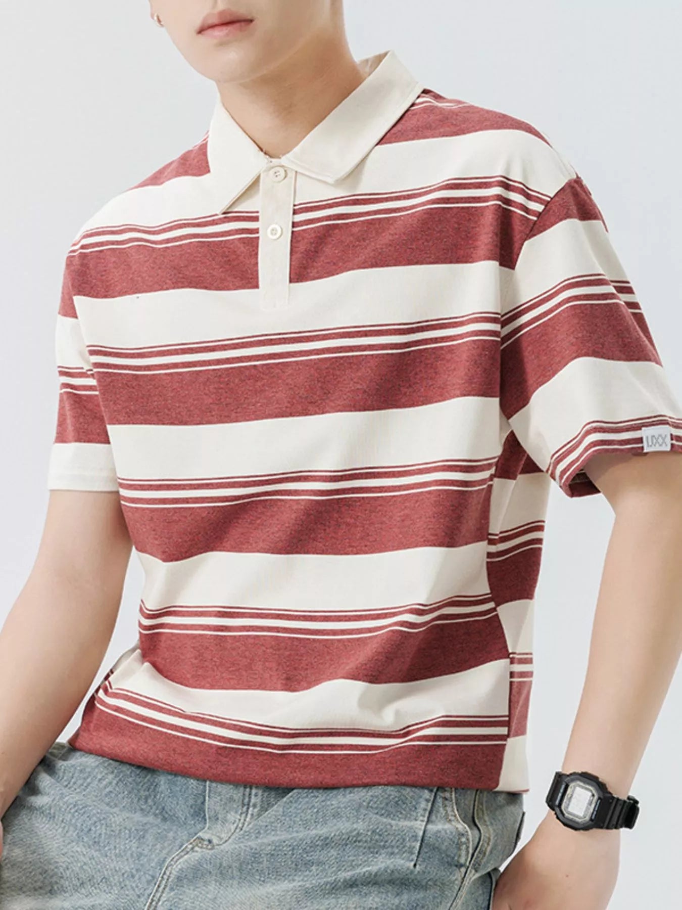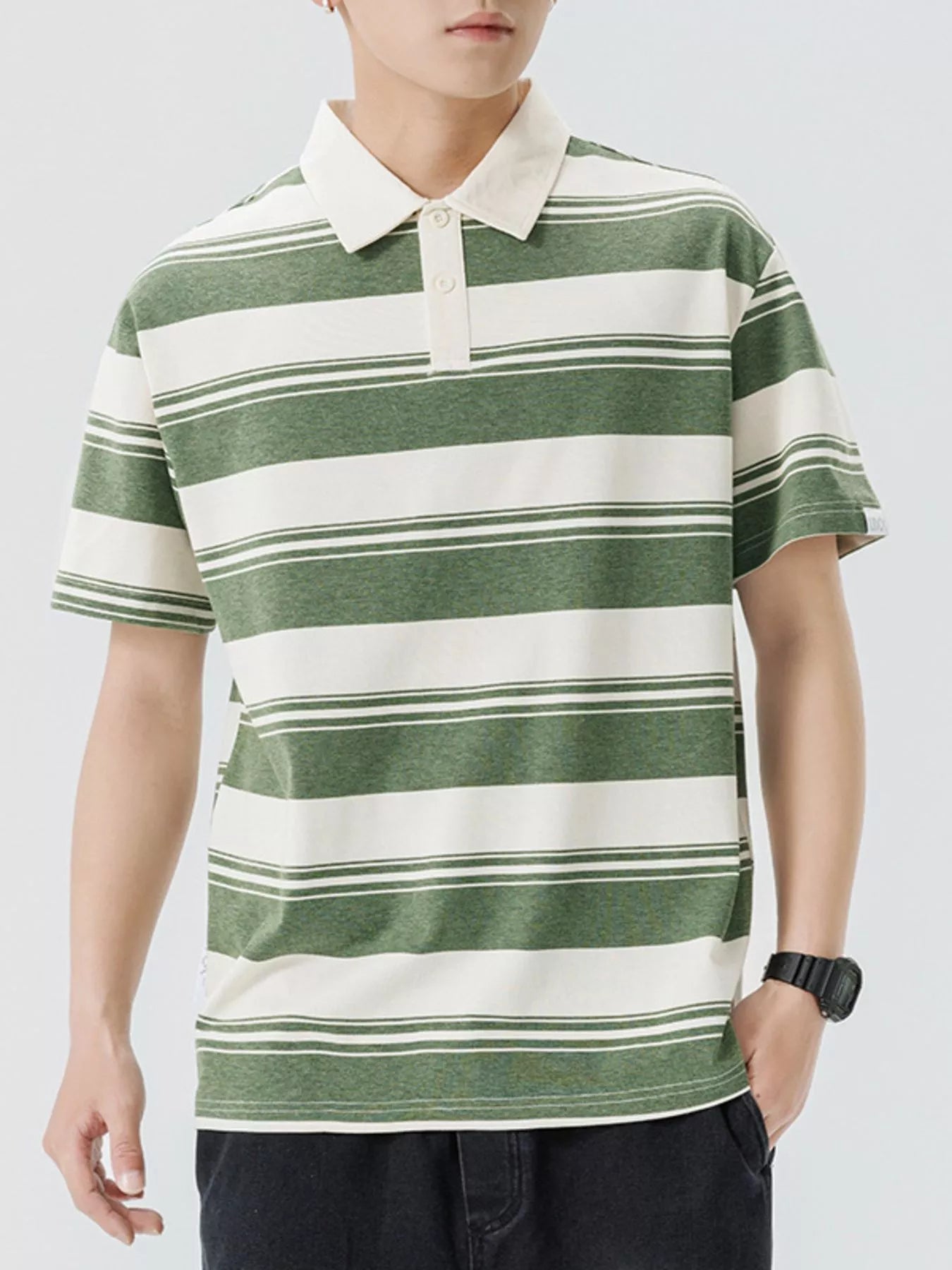 Men's Plus Size Striped Button Detail Short Sleeve Polo