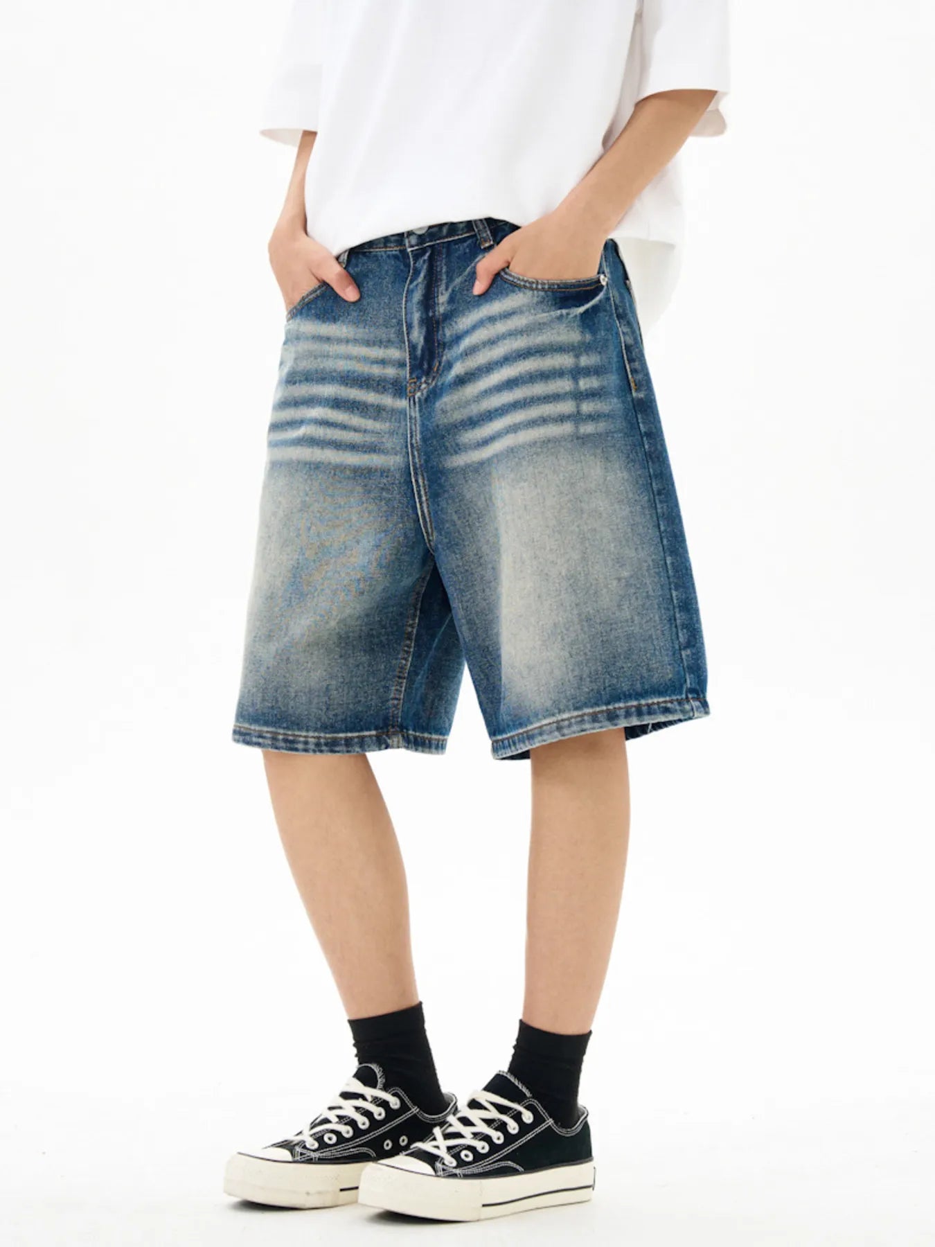 Men's Washed Loose Fit Denim Shorts