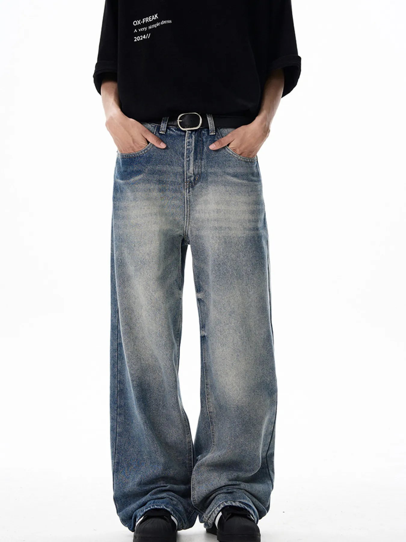 Men's Washed Wide Leg Relaxed Fit Jeans