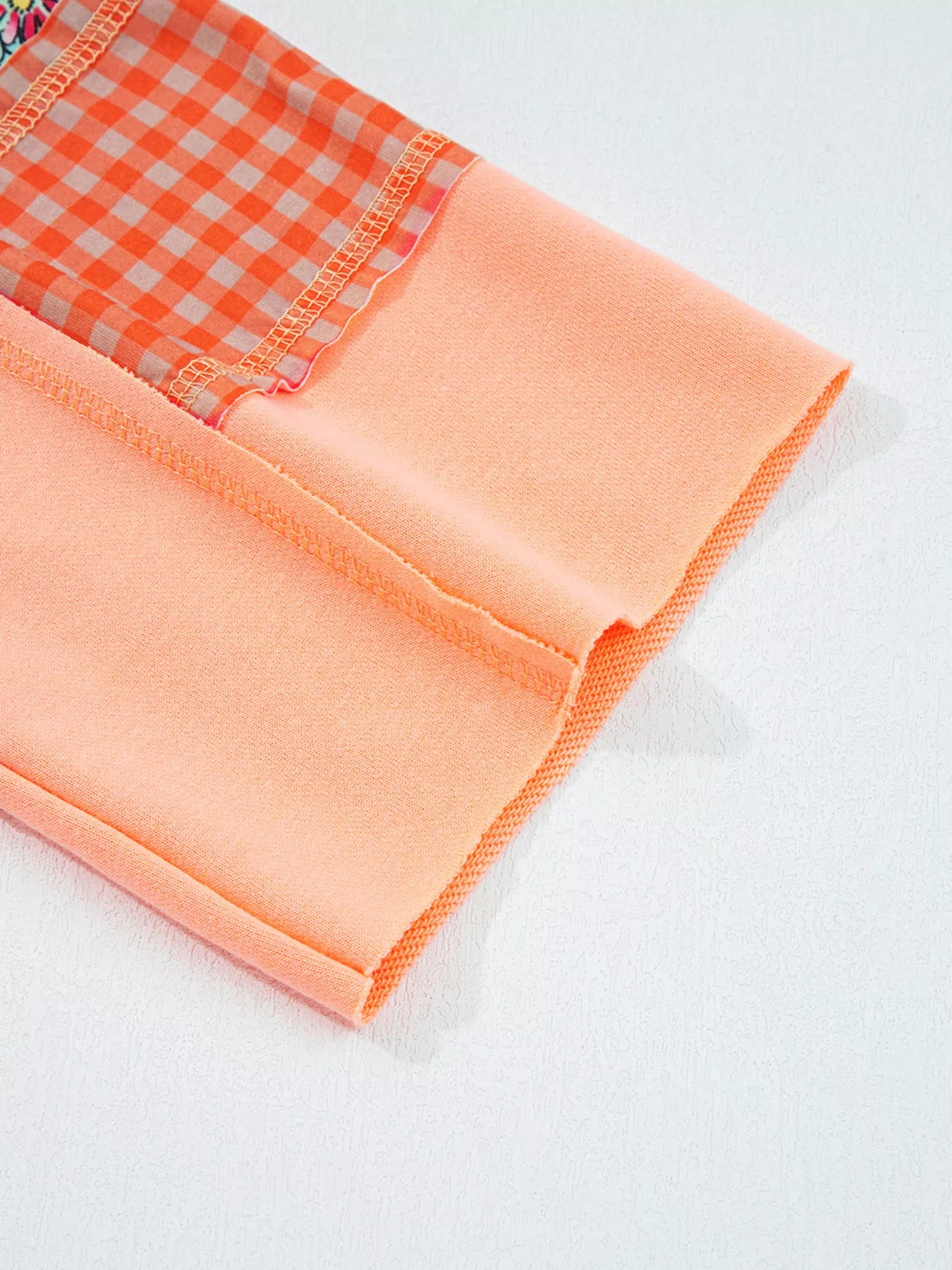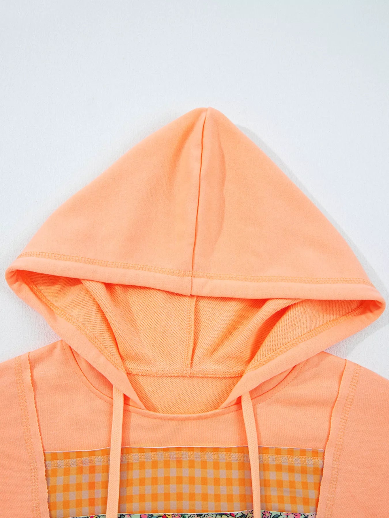 Plaid Floral Patchwork Kangaroo Pocket Hoodie