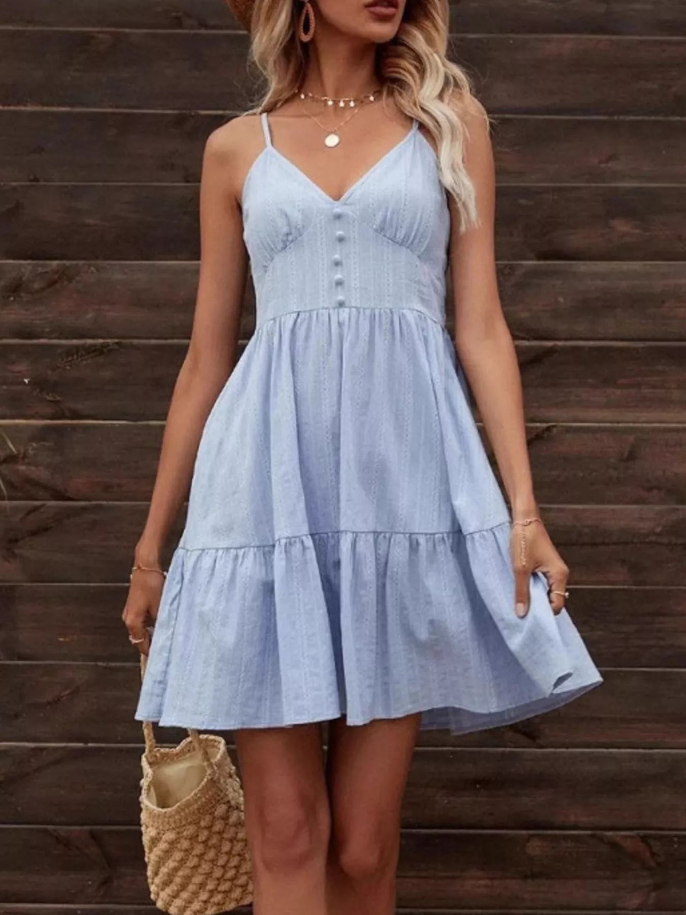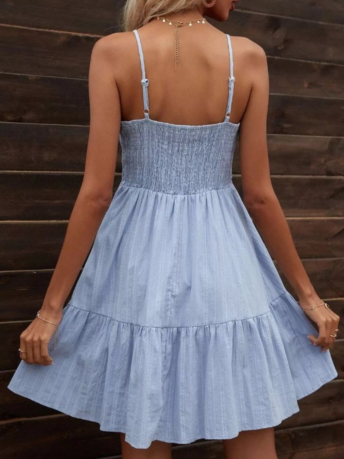 Smocked V-Neck Tiered Dress