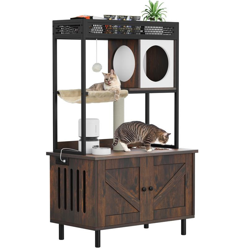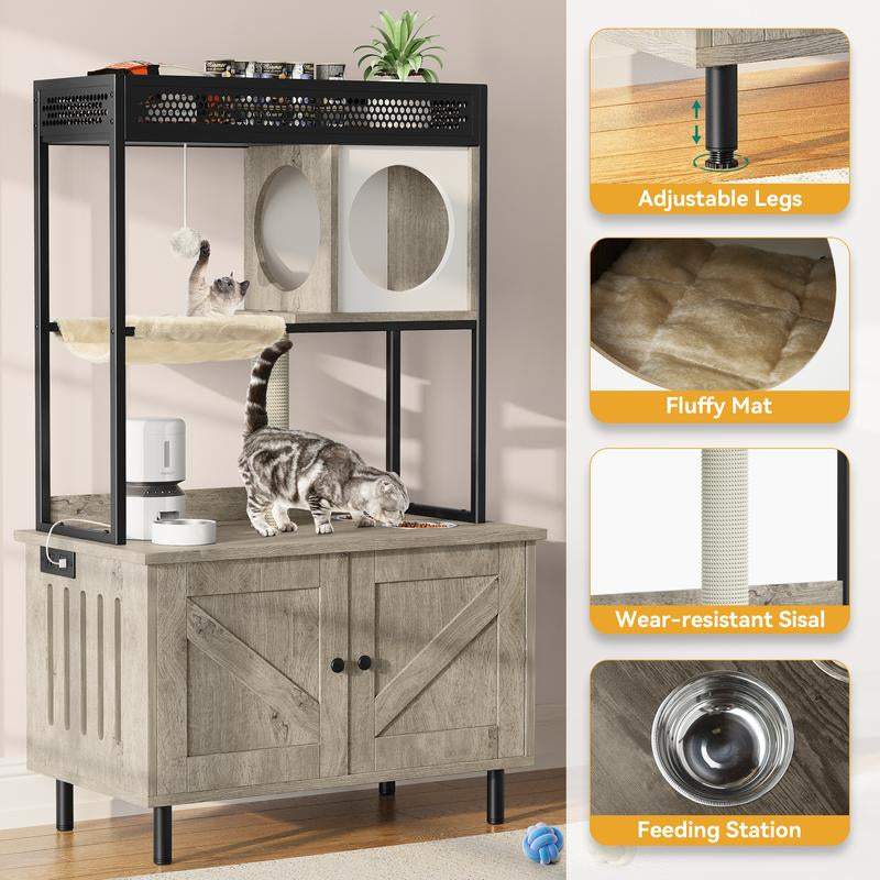 Features: 1. All-in-One Cat Haven : This ingenious cat tree combines a hidden litter box with cozy resting, sleeping, and... Read more