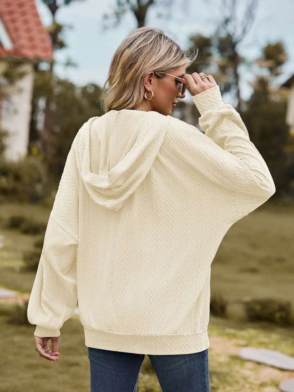Zip Up Drawstring Long Sleeve Hooded Jacket